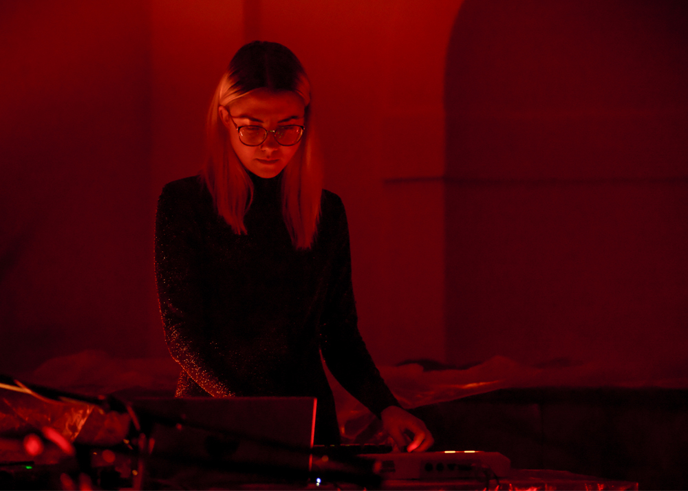 Collaboration is a key element of her work – she often operates within artistic networks and independent spaces (offspaces), organizing projects independently and from the ground up. Her work expands the perception of both intimate and communal environments by engaging with invisible physical fields and existential questions. As a co-founder of the phonon~ crew collective, she organizes events presenting experimental electronic and electroacoustic music in quadraphonic, octophonic, and ambisonic formats.